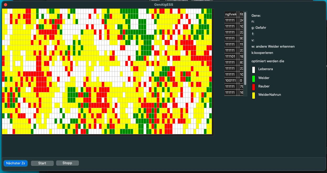 In sociobiology, genes keep culture on a leash. When simulating primate cultures, genes and memes keep each other on a leash. Based on a random distribution of cultures, cultures develop side by side and patterns stabilize.